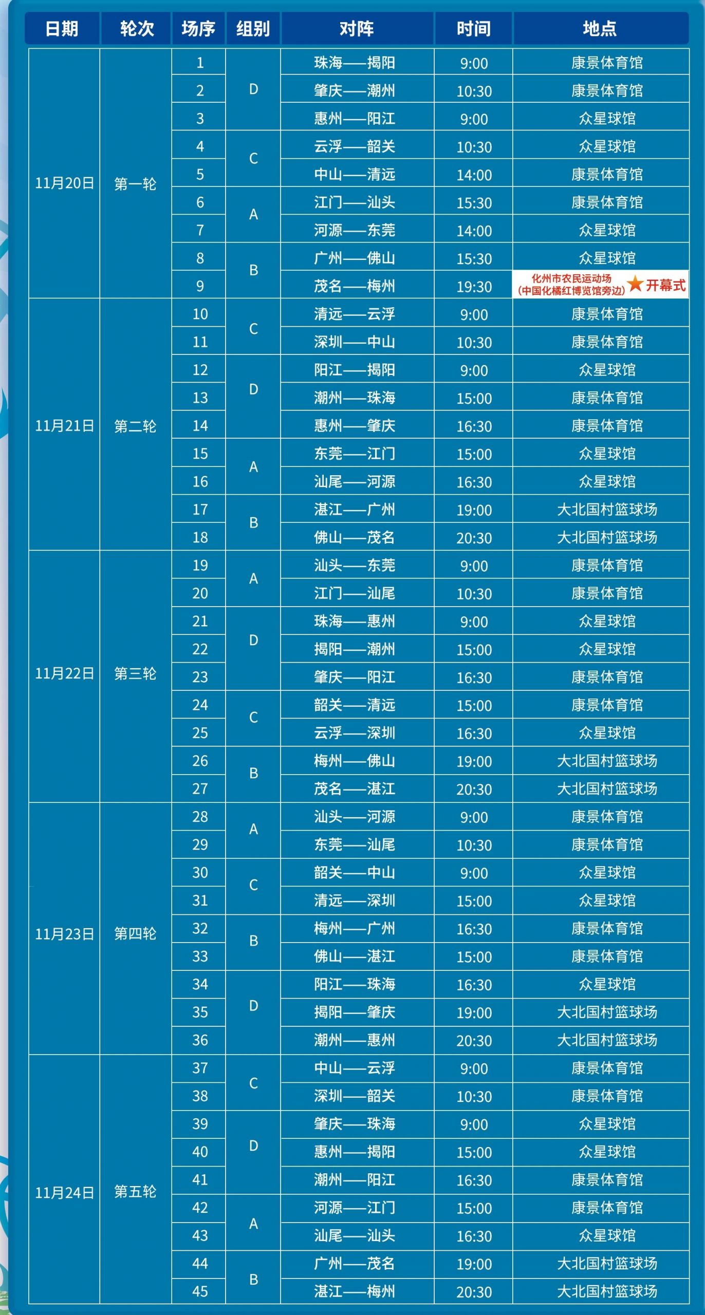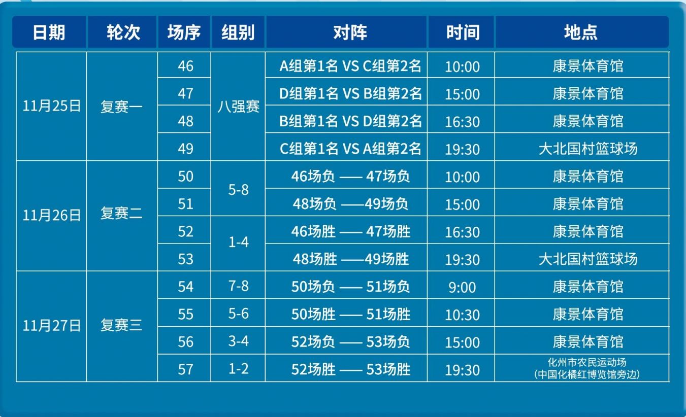 四、赛程安排及比赛场馆第一阶段/小组循环赛