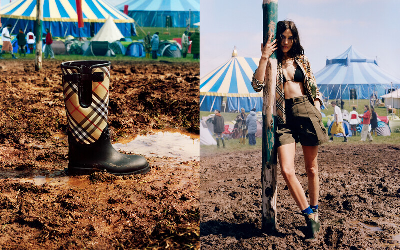 BURBERRY将户外实用与英伦风格结合,打造音乐祭现场最吸睛的造型单品。从泥地雨靴、格纹披肩到马蹄包款,品牌再次证明经典可以不断进化,穿梭于时尚与功能之间。