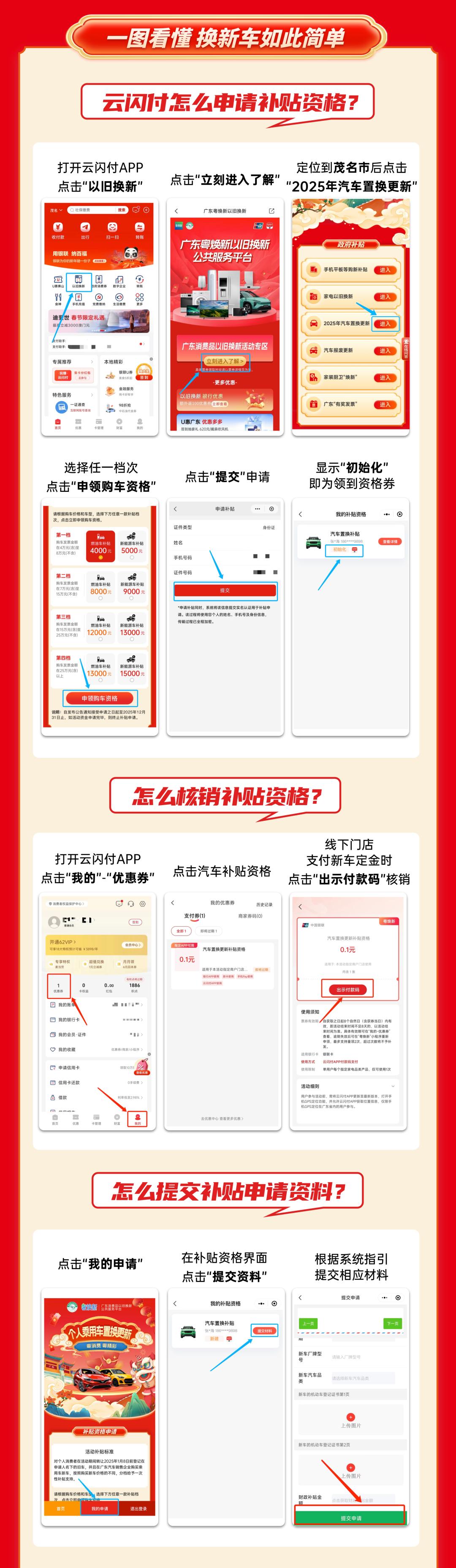 申请人相应置换的旧车和所购买的新车应符合《广东省商务厅等7部门关于印发加力支持汽车以旧换新相关工作指引的通知》(粤商务建函〔2024〕204号)有关要求。